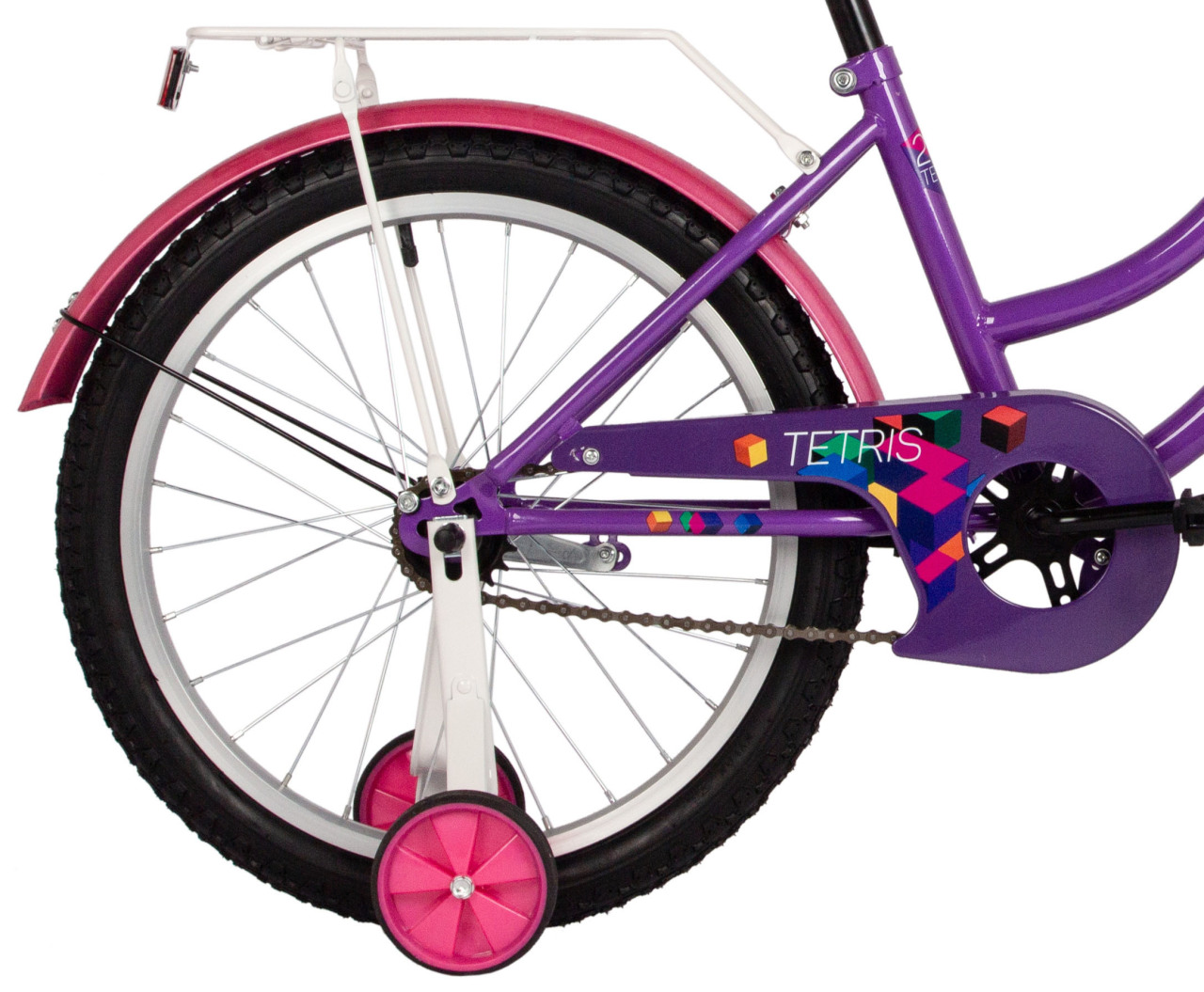 Novatrack Tetris 20" - сочетание комфорта с универсальностью и нежным дизайном. Модель имеет вполне знакомую концепцию - низкая рама, максимальное количество регулировок руля и седла, широкая резина и колеса боковой поддержки. Велосипед мягок в движении и интуитивно прост в управлении, он неприхотлив к выбранному дорожному покрытию и ребенку с ним будет легко обучиться езде на 2-х колесах.