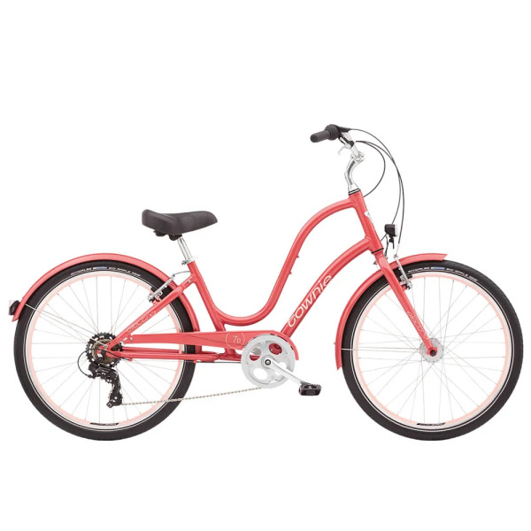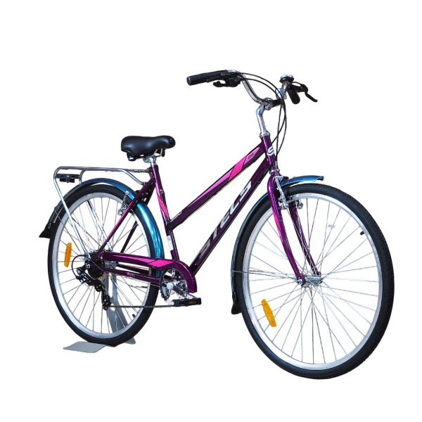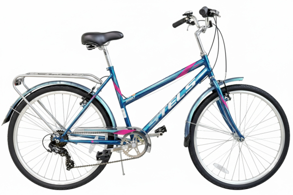 Стильная женская рама, 7‑скоростная трансмиссия, мягкое седло и удобный руль. Также порадовало наличие крыльев и защита цепи.